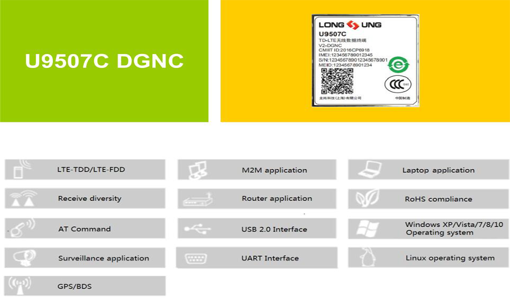 U9507C 是long8国际技术推出的一款 LTE Cat4 无线通信模块,内置丰富的网络协议,集成多个标准接